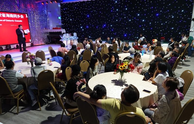 (《 世界华文媒体 》 特派记者勾芍人多伦多报道)2025 年 10 月 5 日,秋阳温婉,枫叶正红 。 位于多伦多士嘉堡的新时代俱乐部(1399 Kennedy Rd Unit 14A, Scarborough, Ontario M1P 2L6),因为一场盛会而洋溢着暖意 。 安省海南同乡会在这里举办了一年一度的中秋聚会 。